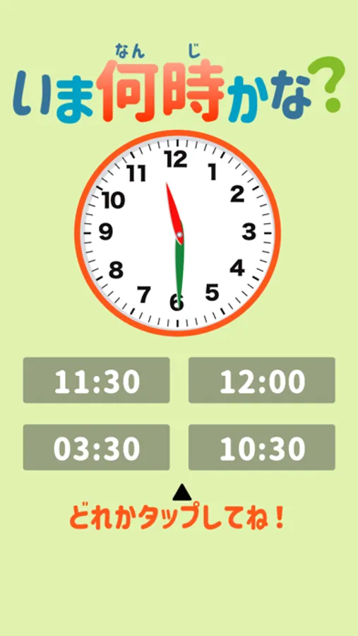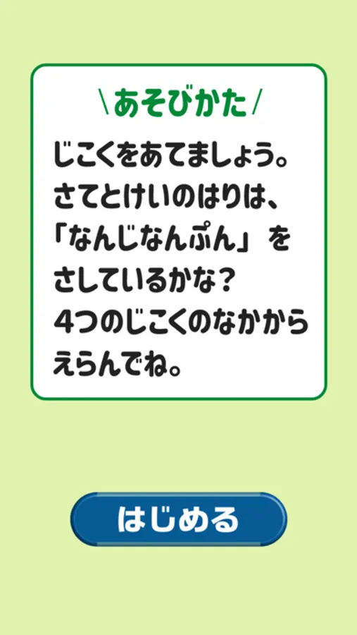 時計を見て、4つの時刻の中から正しい時間を当てる簡単ゲーム!