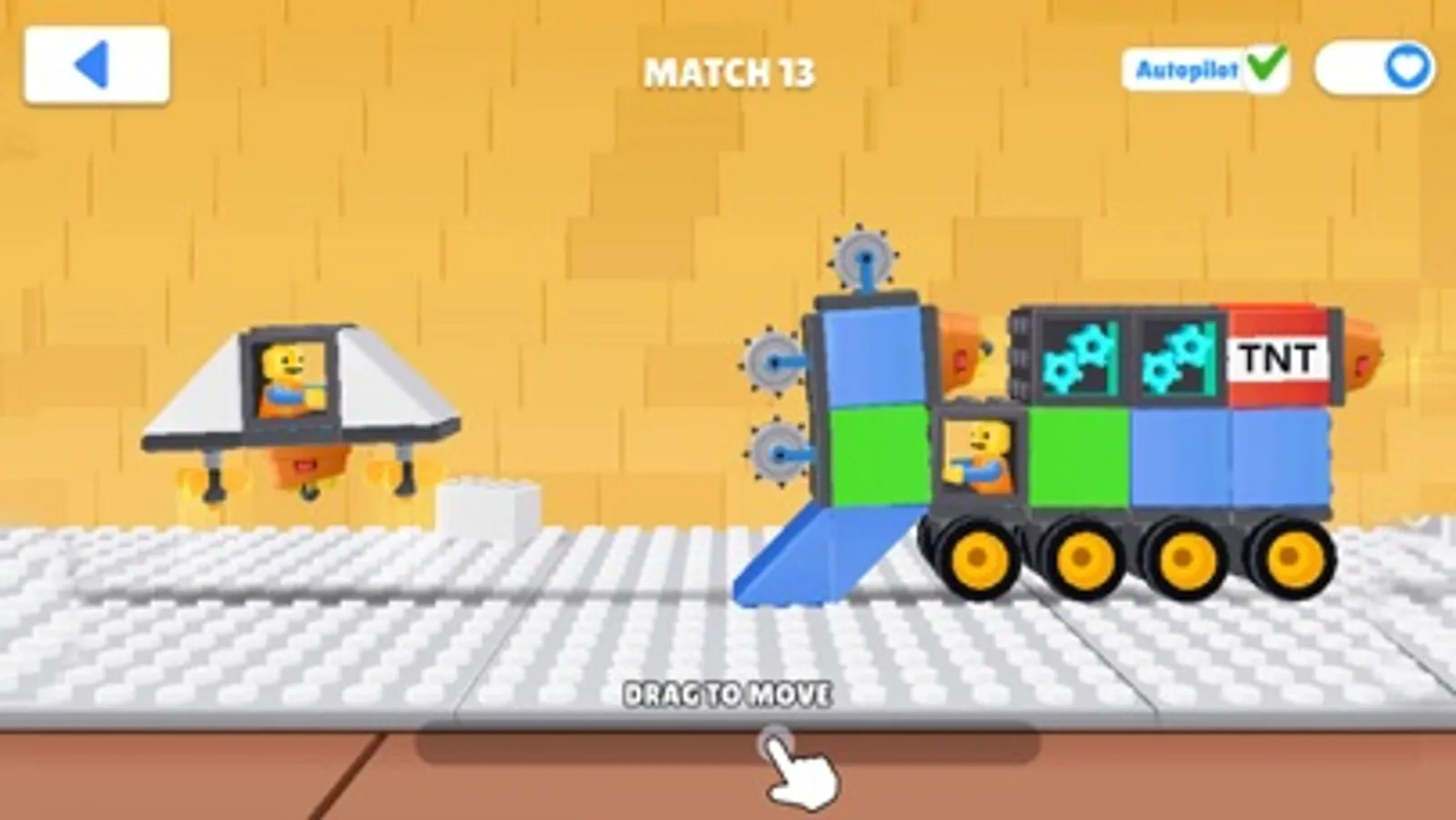 Of course, you have HP points. It is based on the amount of blocks you have attached to your fighting tank. You think the more the better? Well, not at all! The more parts your battle car has, the less manoeuvrable it becomes. And it's all about strategy, tactics & timing skills. Drive carefully! Don't attack when it's too dangerous, control the space. Think before you act - and you will be able to win even when you are at the disadvantage. It's like a puzzle.