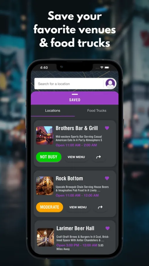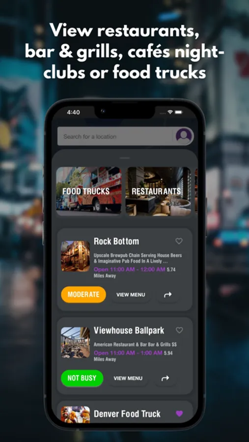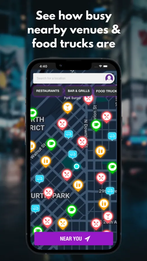 - View the busyness of nearby restaurants, bars, cafés, breweries and nightclubs