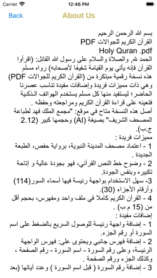 هذه نسخة رقمية مبتكرة من (القرآن الكريم للجوالات PDF) وهي ذات مميزات فريدة وإضافات مفيدة تناسب عصرنا الحاضر؛ ليستفيد منها كل مسلم يستخدم الهواتف الـذكـية فتعينه على قراءة القرآن الكريم ومراجعته وحفظه