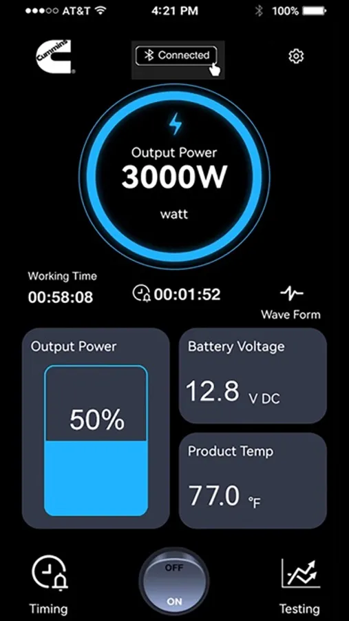The Cummins Inverter APP can help you drive and control the Cummins Inverter TM BluetoothTM inverter with your iphone.