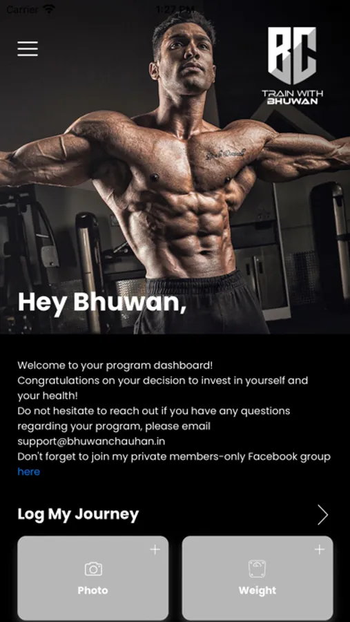 Download the Train with Bhuwan members app to take ownership of your health and fitness today. This app will serve as your pocket companion throughout your fitness journey where you can access all your plans and programs specifically designed to help you achieve your fitness goals.