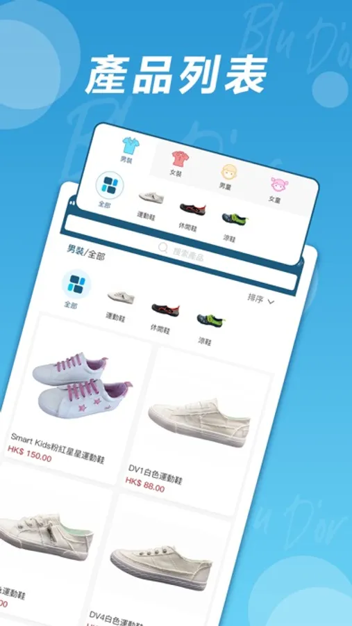 There are categories in Apps, distinguishing different categories such as men's clothing, women's clothing, boys, girls, etc.