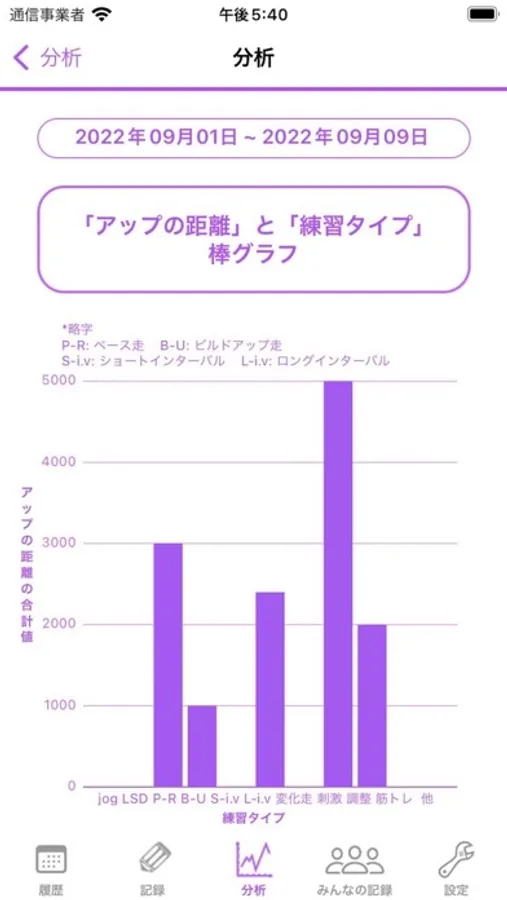 入力したラン記録を元に、グラフでのデータ分析が可能。