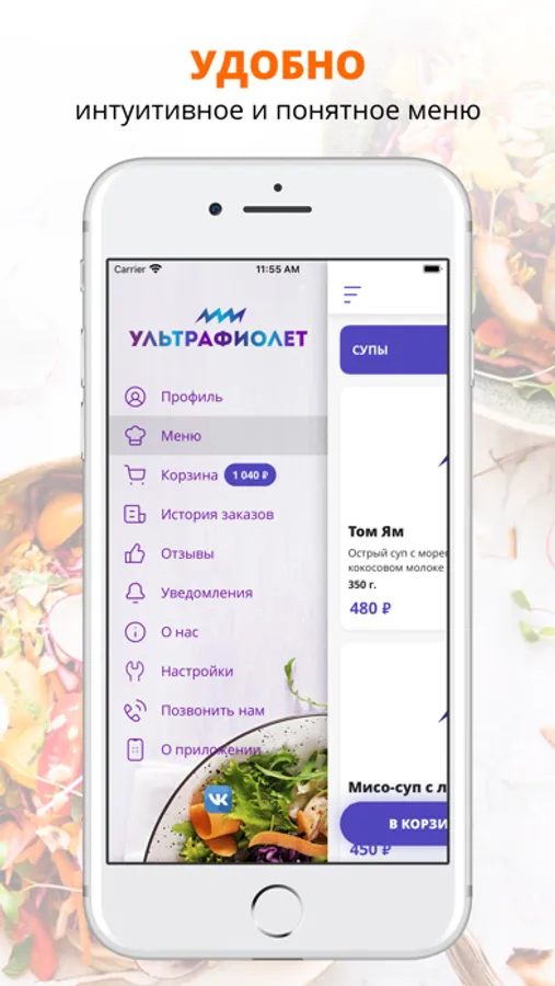 Ультрафиолет — это удобный способ заказа еды домой или в офис! Мы готовим наши блюда из качественных свежих ингредиентов и доставляем еду быстро и бережно.