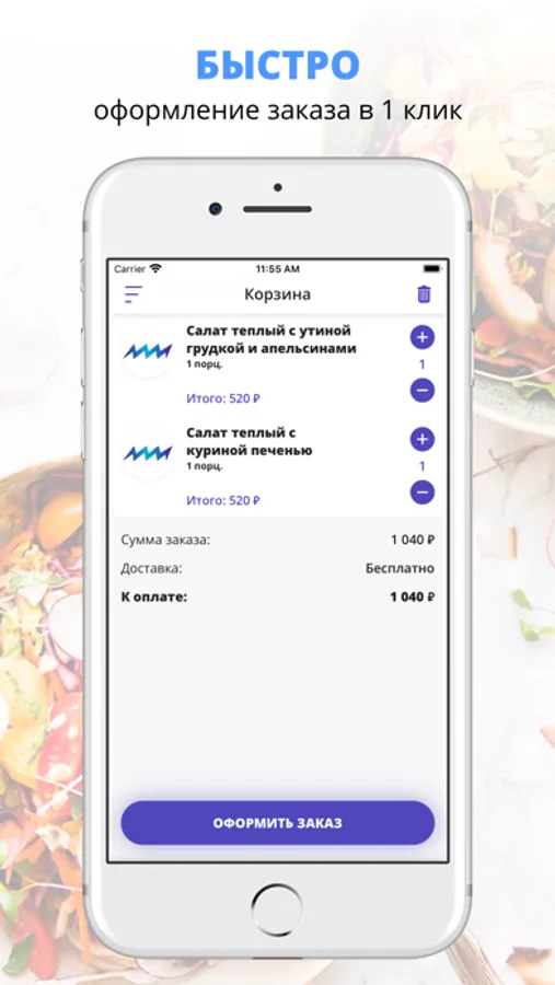 Скачивайте наше приложение, оформляйте заказ и наслаждайтесь любимой едой, где бы Вы ни были! Приятного аппетита!
