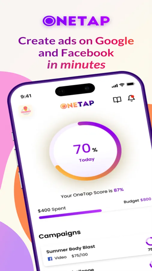 With OneTap you can manage your social and digital campaigns on Facebook, Instagram, and Google Ads without leaving the app.