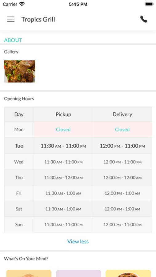 You can find our whole menu on our app, filled with mouth-watering dishes and catering for all kinds of different tastes! Thank you for visiting Tropics Grill And Bites in Uxbridge. We hope you enjoy our online ordering app and your food.