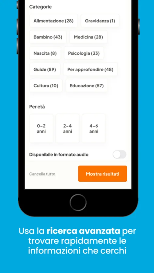 Naviga tra i nostri contenuti per argomento, per età, oppure utilizza la ricerca avanzata. Approfondisci i temi più importanti che riguardano a salute e l'educazione del tuo bambino o della tua bambina attraverso i percorsi di lettura e ascolta una selezione di articoli in formato audio per quando hai poco tempo.