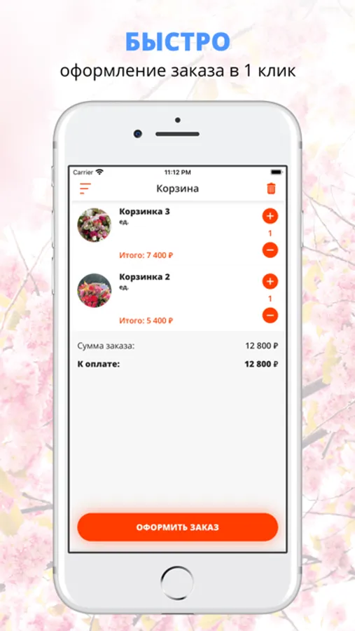 Скачивайте наше приложение, оформляйте заказ и дарите цветы любимым!