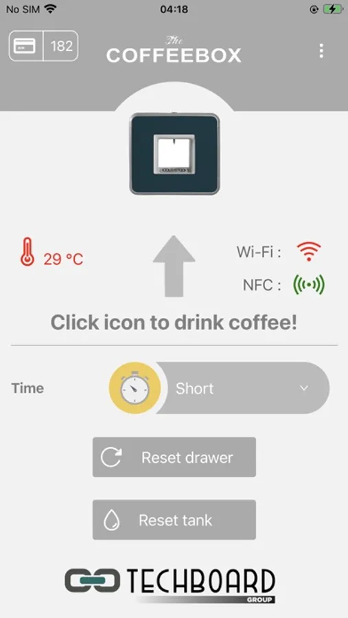 Application in bundle with coffeemachines let you order capsules, setup the machine via NFC with different parameters like erogation time, heater temperature and some other checks