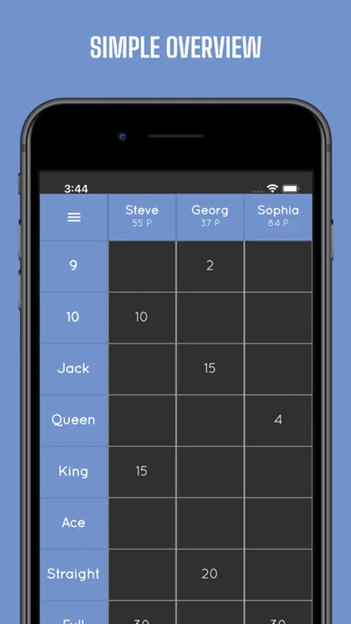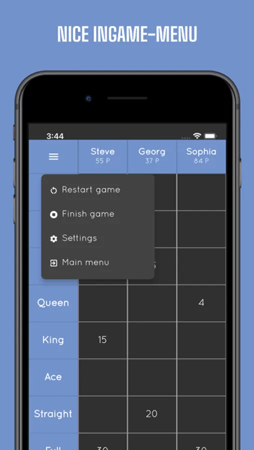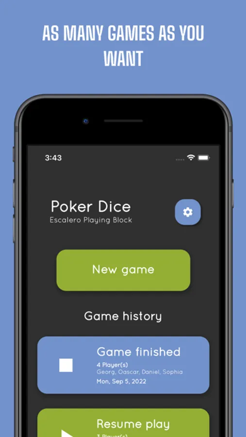 You like to play Eskalero or dice poker but don't have a game pad at hand? No problem, with our app you have a modern & digital way to note & record your games. No matter where, when and how, our app is always available for you. Do the maths yourself? No, we'll do it for you.