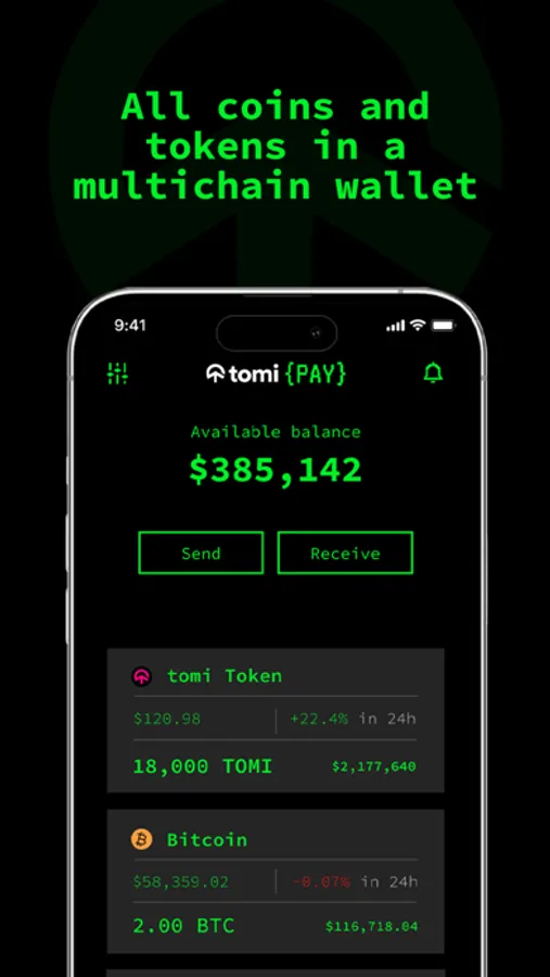 Experience the ultimate self-custody solution with tomiPAY, a digital payment system with built-in privacy. With our app, you can safely and privately transact various currencies, Swap cryptocurrencies, and conveniently stake tomi tokens.