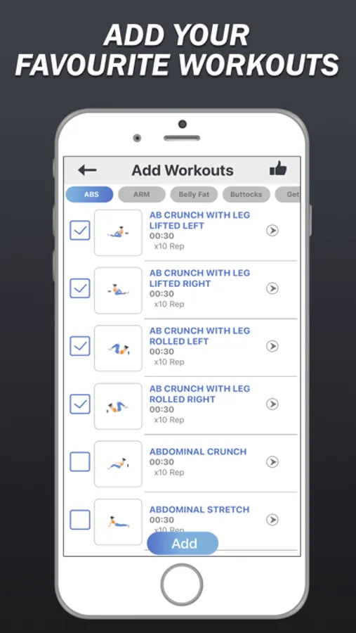 Create your own custom exercises to use in your workouts! Choose exercises, duration, rest intervals and challenge yourself with your own training.