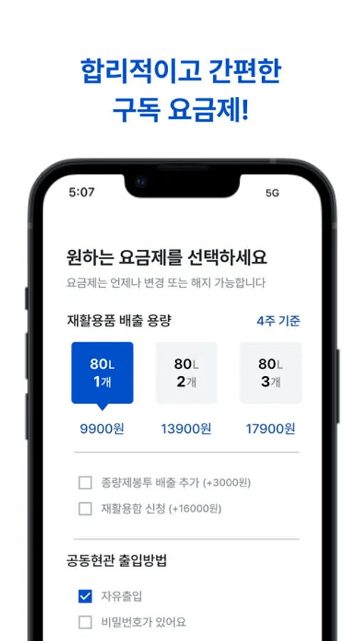 일반쓰레기 수거를 신청하면 4주 3000원이 추가됩니다.
