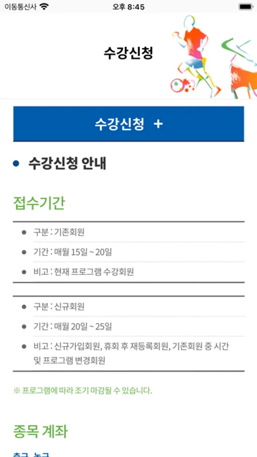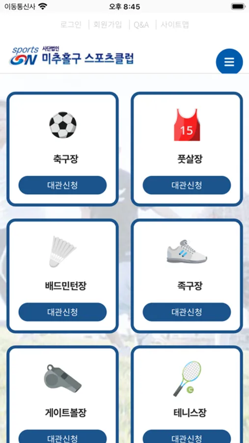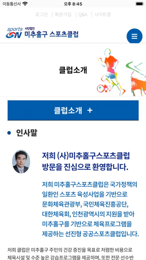 미추홀구스포츠클럽의 각종 프로그램 안내 및 체육시설 대관신청(예약)이 가능합니다.