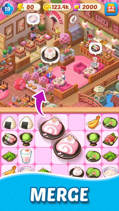 ENJOY Eggs Benedict in New York, DRINK Tom Yam Gong in Bangkok, ROLL Sushi in Tokyo, DINE on Escargot in Paris… Merge Cooking takes you on a world tour, city by city! You will unlock a world-famous dish every day and discover more exciting and challenging recipes to hone your cooking skills.