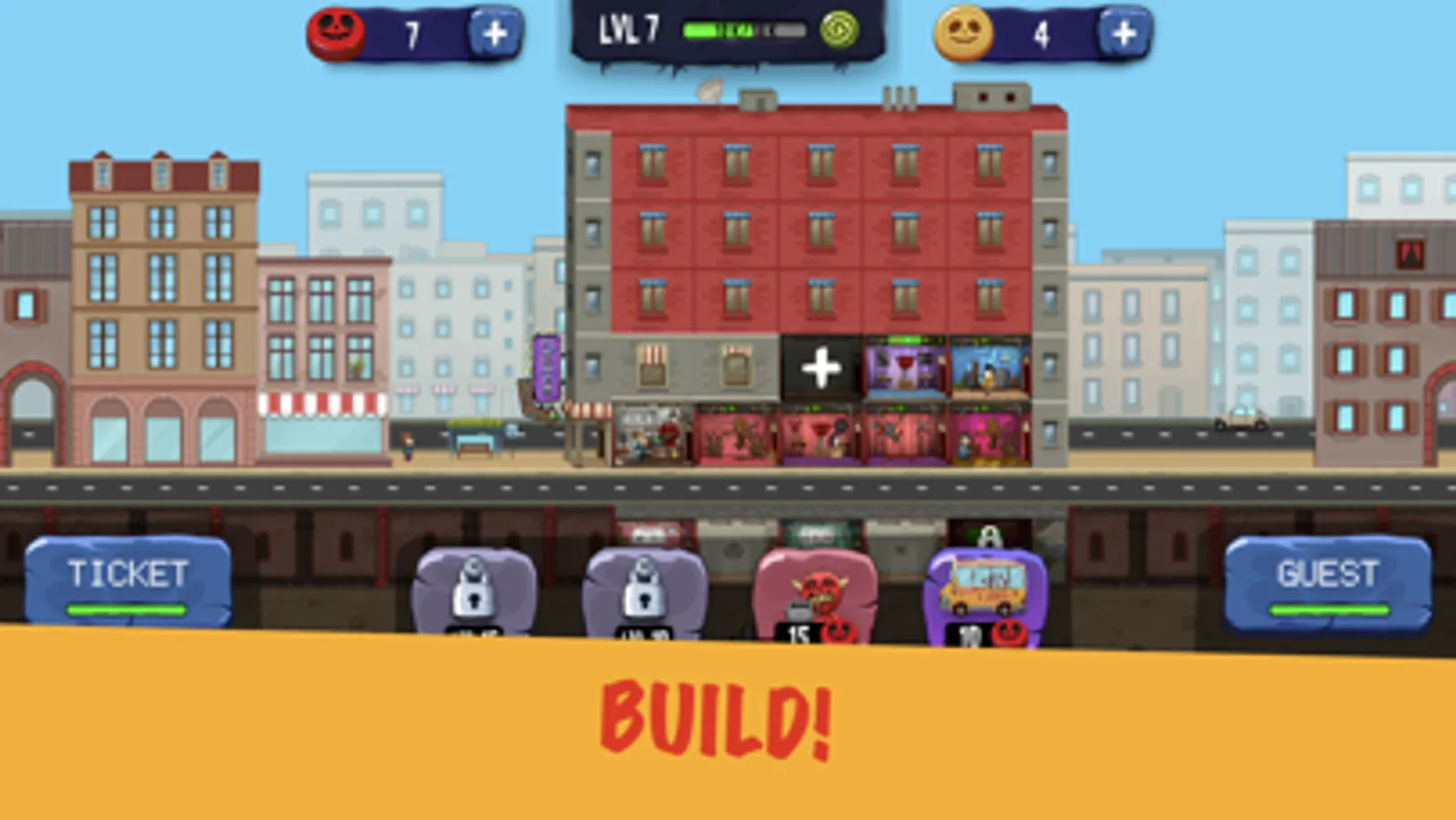 Expand your factory from 1st floor to 100th and more floors! You can make the rooms bigger and better as you expand and grow your fear business. Use Tap tap or idle clicker method and create a scary rooms for customers. They would like horror rooms and play with Hagi Vagi.
