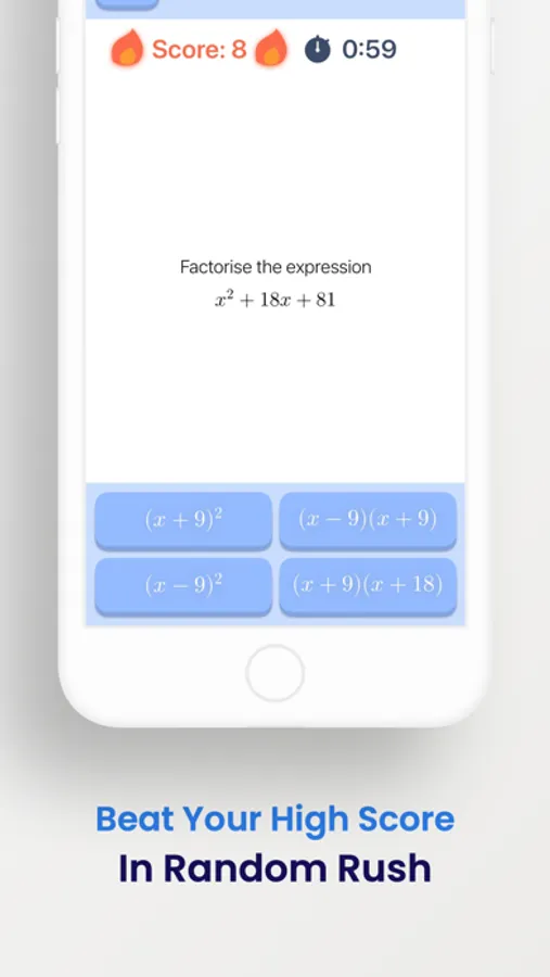 • Random Rush: Answer as many randomly generated drill-type questions as you can within the time limit and try to beat your high score!