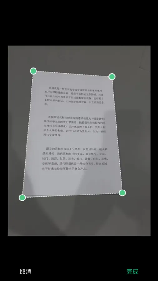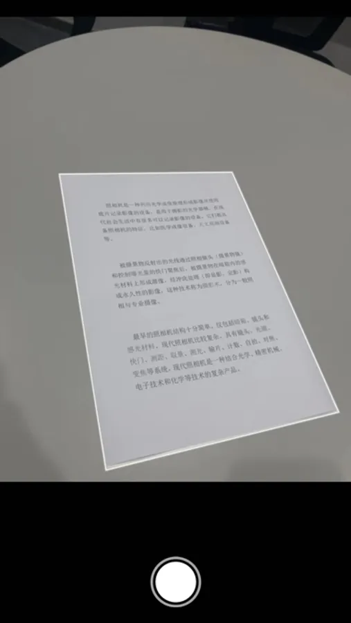 文本相机是一款轻量级的,把文档转为照片的的工具,可以自动捕获文档边界,也可以手动调整文档边界,最后生成一张处理过图片,让照片中的文档比例接近原有文档比例,且文字清晰可见。