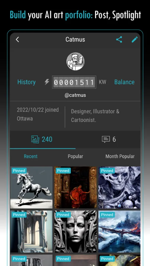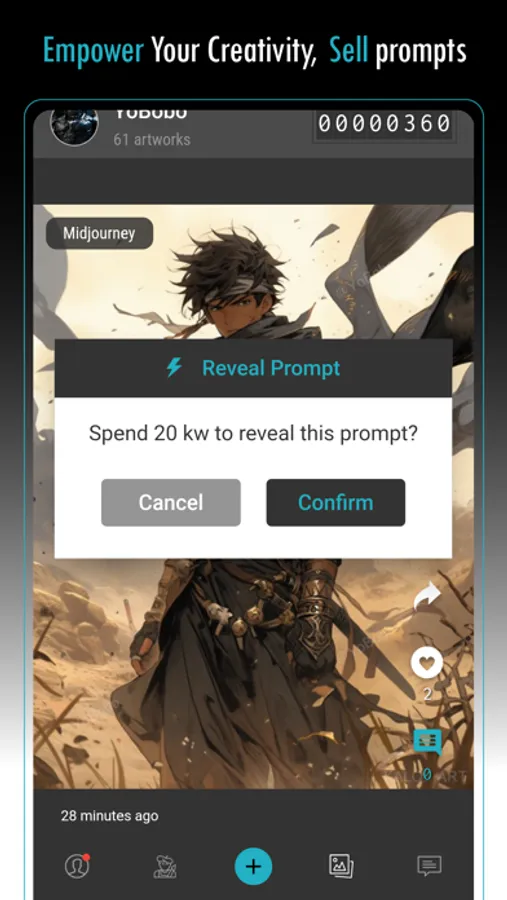 - Build your AI art portfolio: Post, Share, Spotlight. Empower Your Creativity: Sell prompts, Charge up