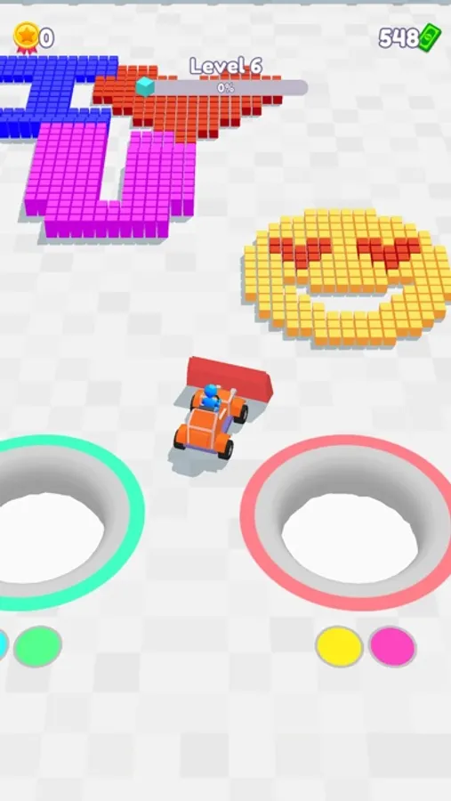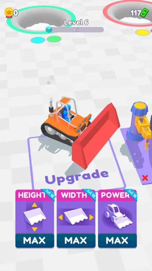 Look carefully at which color you need to create! You can upgrade your bulldozer in the Upgrade zone with the coins you earn by creating paint. Here you can pump not only the bulldozer, but also your dexterity and ingenuity! So hurry to the fun!