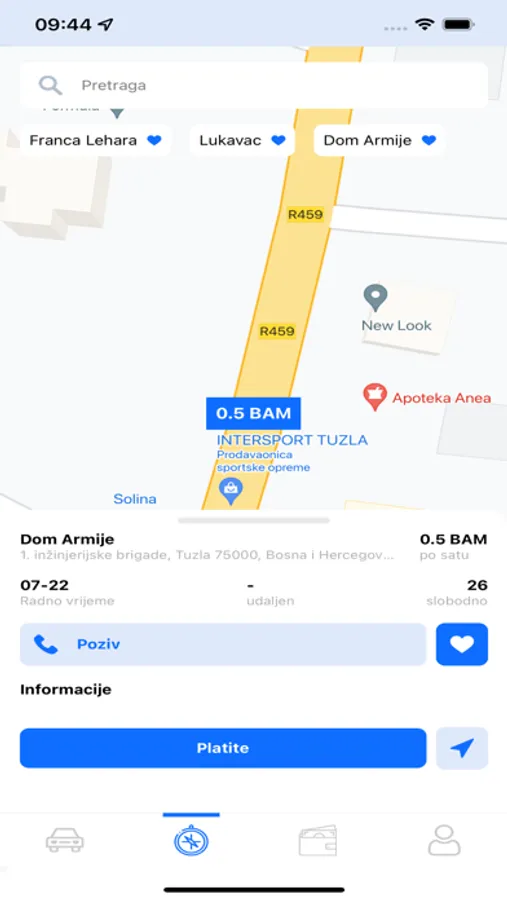 Mobilna aplikacija omogućava registraciju osobnog automobila u aplikaciju, pruža mogućnost plaćanja parkinga (na način kako to upravitelj parkinga omogućava), prikazuje informacije o zauzetosti parkinga u realnom vremenu, omogućava automatsko navođenje korisnika na mapi u ovisnosti od izabrane lokacije parkinga do slobodnog parking mjesta, te prikazuje kompletnu historiju parkiranja korisnika po lokaciji i po cijenama ako je omogućeno plaćanje za taj parking.