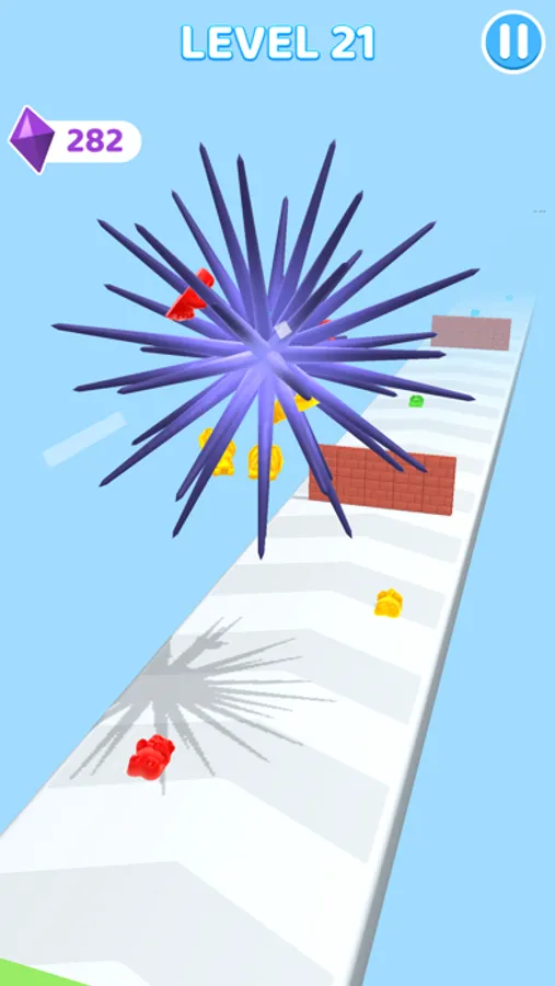 Beware of spikes! Tap to grow your spikes and collect delicious jellies from the ground. Be careful not to hit the walls with them, it will hurt you more than the bricks!