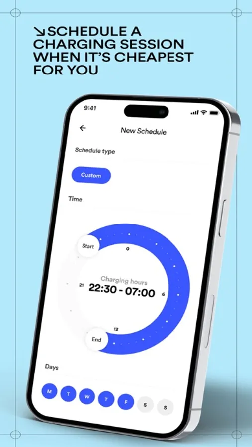 • Charging sessions scheduling: set up when you need your car to be fully charged by and create charging windows for when it’s the cheapest time to charge your car.