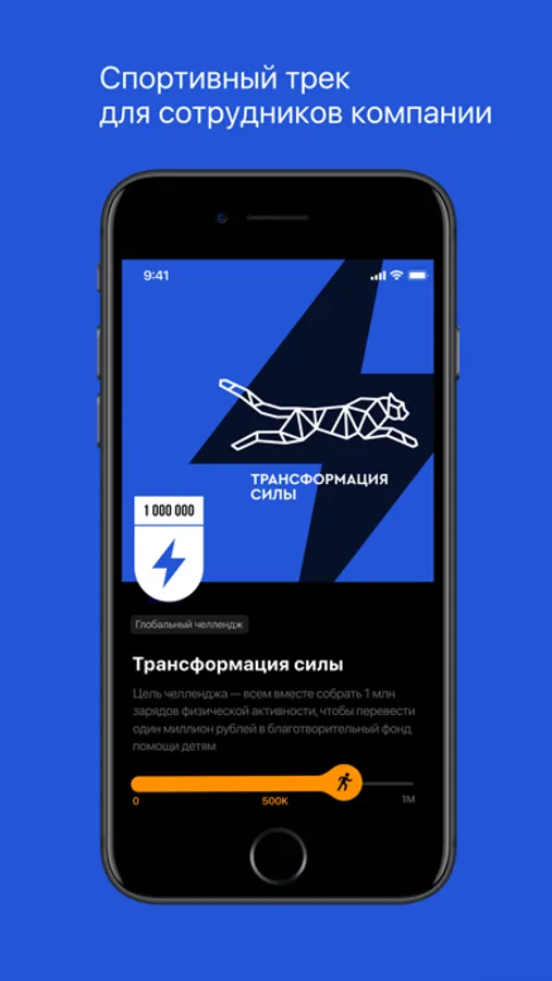 - выполнение командных и персональных челленджей за специальные баллы — заряды, которые затем конвертируются в реальные денежные средства и будут переведены в благотворительный фонд