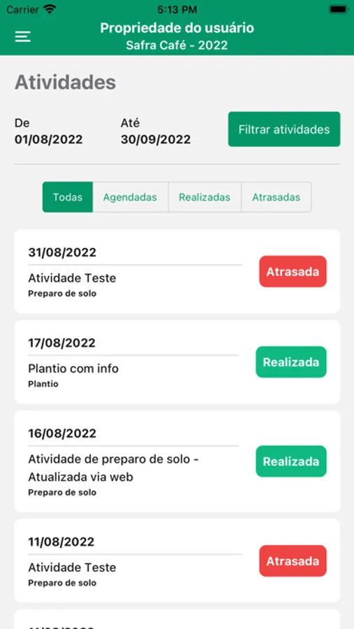Consulte suas propriedades, safras, atividades e previsão do tempo gerado pela ServingAgro.