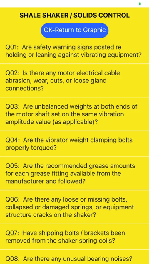 ProSafDrillRig accesses a cloud database of over 580 questions / inspection items in 29 equipment / area categories.