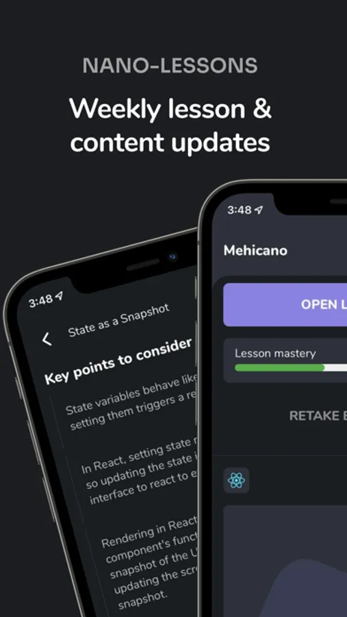 Bite-sized interactive nano-lessons for the technology of your choice await you! You won’t need to spend more than 10 minutes a day for us to give you access to interactive exercises and full-on knowledge sources for what you are learning, so you can always expand your knowledge!