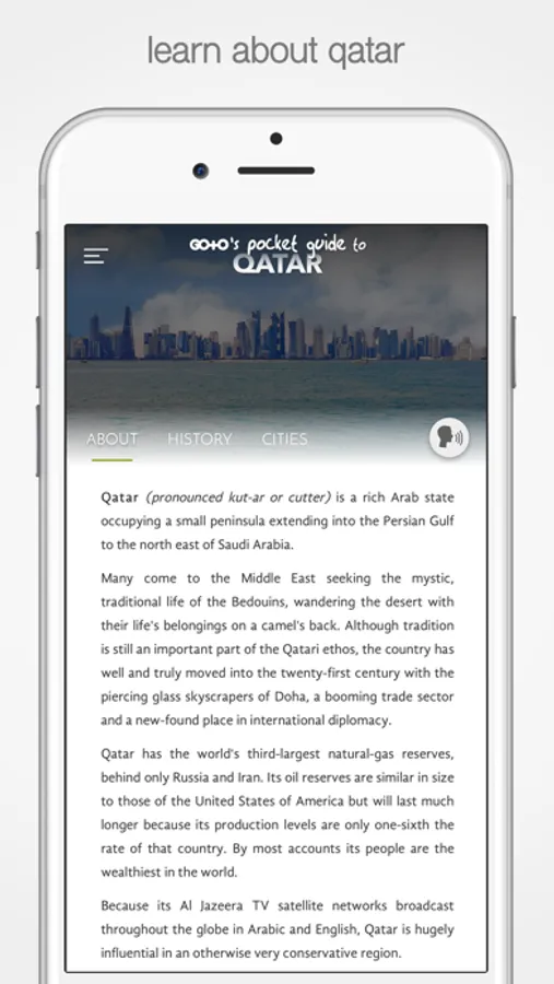 Explore the Arabian state of Qatar with Go To Travel Guides' Pocket Guide To Qatar. Create a personalised bucket list itinerary of all the special things you want to do in Doha and beyond! Our essential information, best things to do, top restaurants and nightlife suggestions are all available offline!