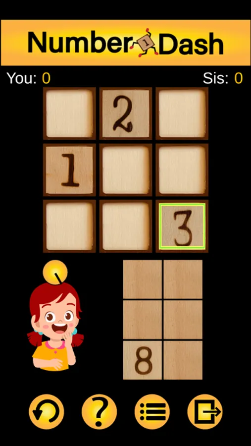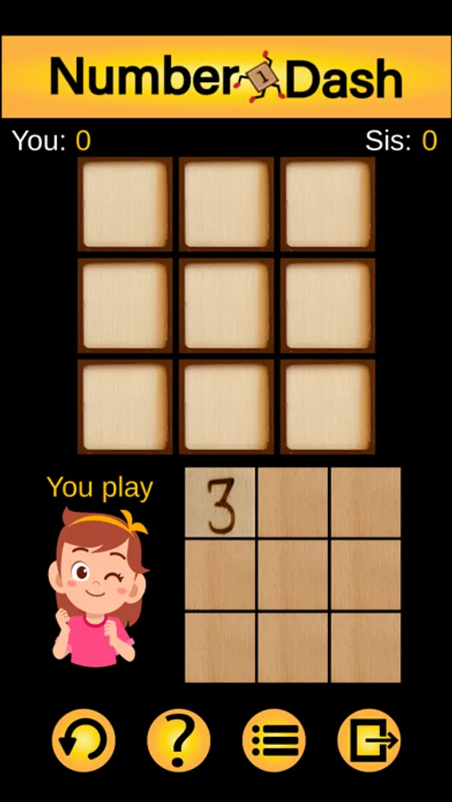 Do you like tic tac toe? Do you know the numbers one to nine? Then Number Dash is for you! This simple game is more challenging and a lot more fun than tic tac toe. You play against the computer at multiple levels with increasing difficulty. Little kids can start at the easiest level to get the hang of the game and move on to the higher levels to exercise and improve their analytical skills. For older ones, you can start at the medium level and look out for updates for advanced game play.