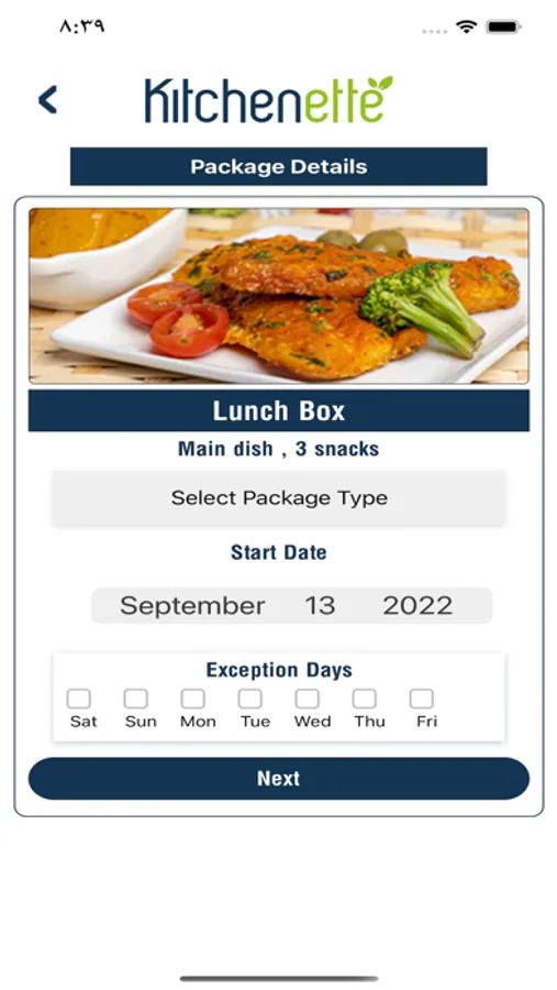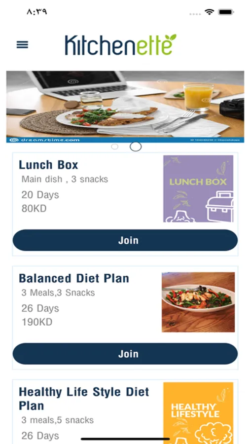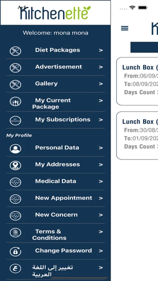 Kitchenette Diet Mobile App, collect your package from our healthy food and drink menu.