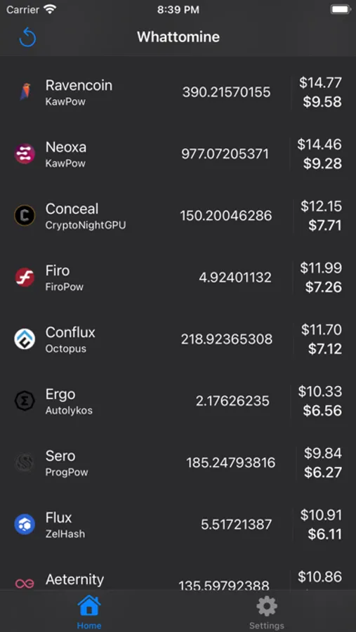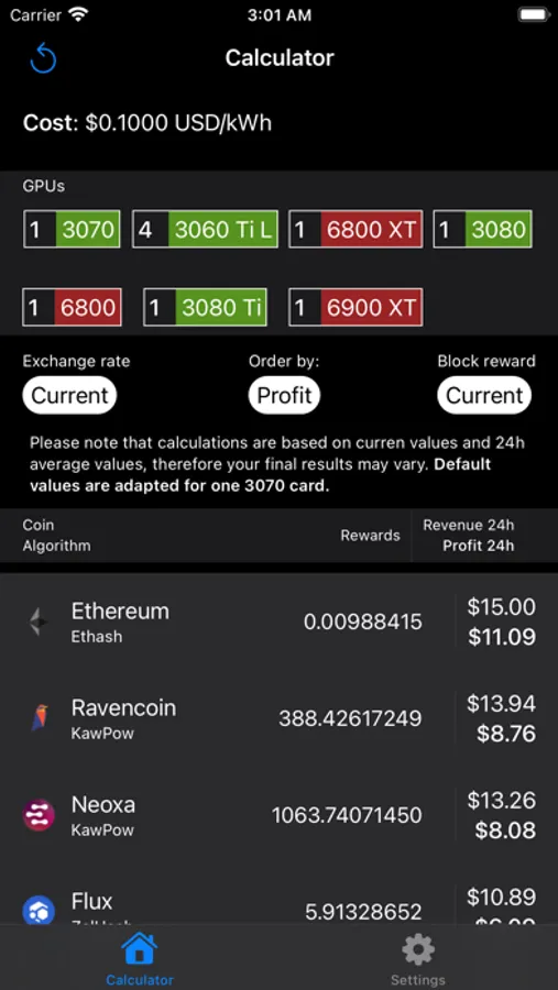 The main functions of Hashrate is to calculate which is the token with the highest profit in real time.