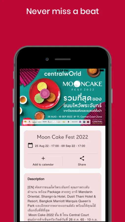 Step into various experiences in our shopping malls. The CENTRAL Life X application offers news, promotions, and exclusive privileges.