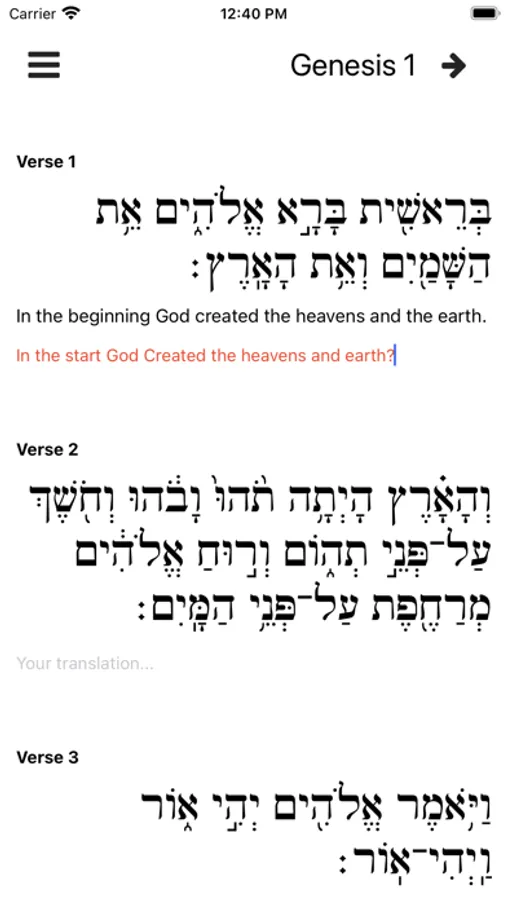 • You can filter verses by difficulty, so if you're just starting out with vocabulary you go straight to the verses whose words you recognise.