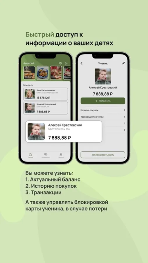 Родители смогут контролировать расходы своих детей и быть в курсе их питания.
