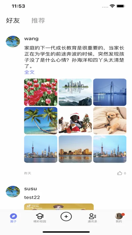 3. 查看全校通讯录、班级通讯录、好友通讯录,对方是好友、同学或者班级老师可以打电话;