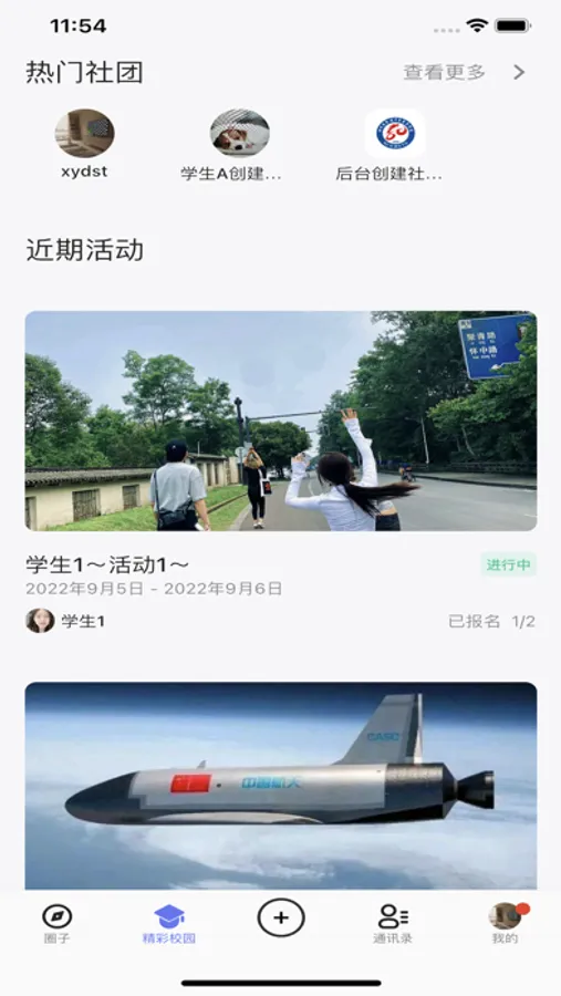 2. 可以创建社团和活动,查看并加入他人创建的社团和活动;