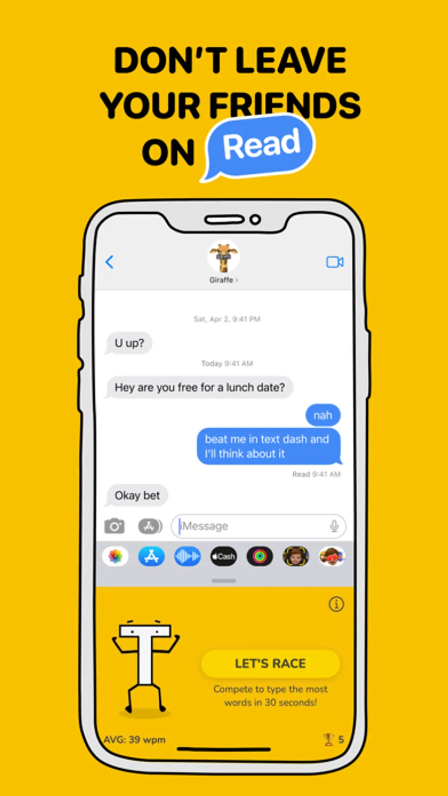 Welcome to Text Dash! Think you're a fast texter? Race your friends and find out!