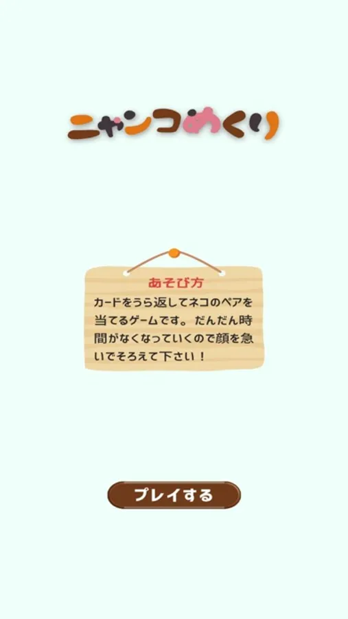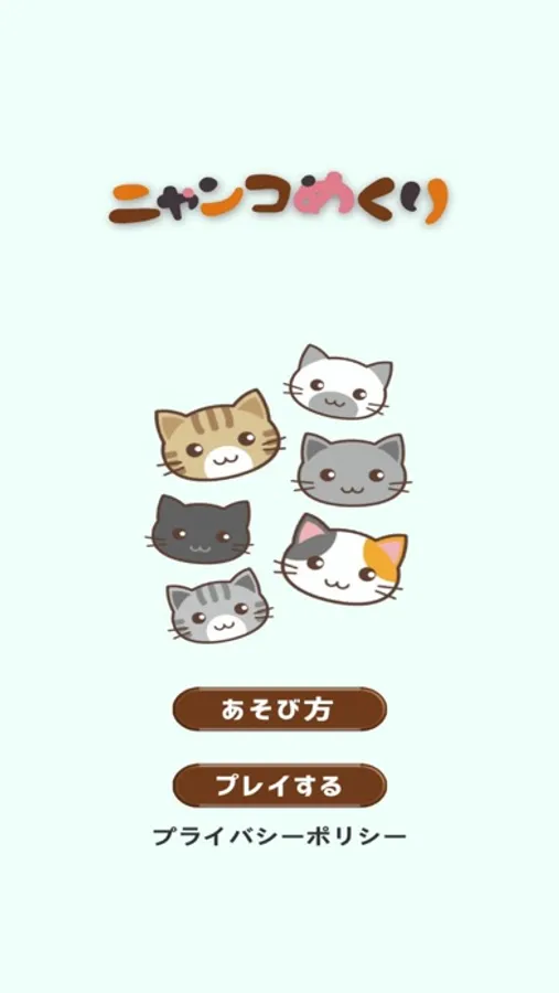 カードを裏返して猫のペアを当てる神経衰弱の優しいゲームです!