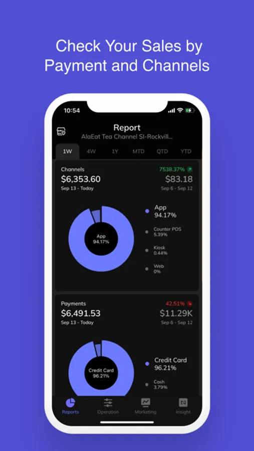 - Bring the sales data from all Peblla's channels like POS (point-of-sales), Kiosk, Web and App in real time.