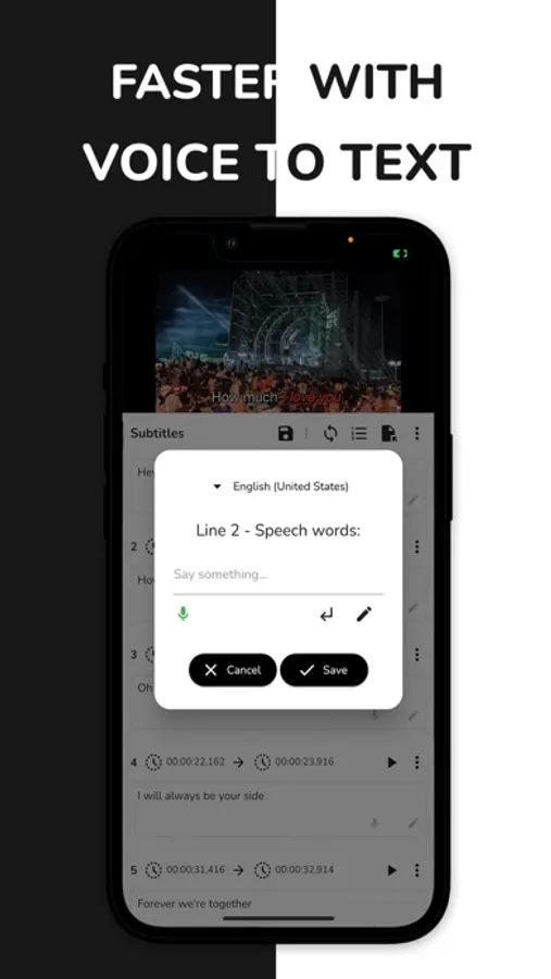 - Voice to Text fast input. Record your voice to make subtitle lines.