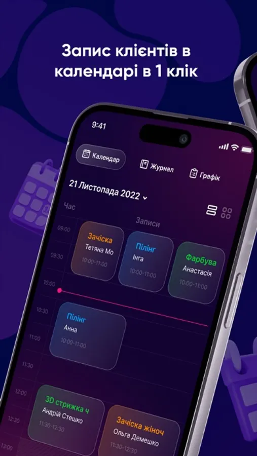 Цифровий календар - графік візитів клієнтів у зручному календарі. Запис клієнтів в 1 клік. Доступ з усіх пристроїв.