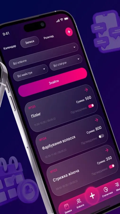 Push та SMS повідомлення - ти не пропустиш жодного запису, а клієнт точно отримає підтвердження від тебе.