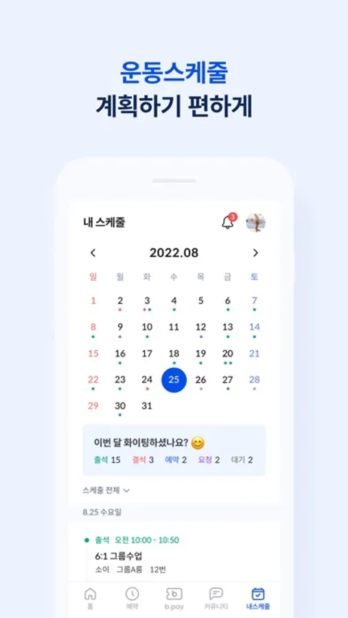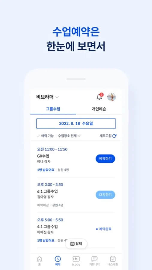 또한, 트레이너와 PT 수업을 간편하게 관리, 승인할 수 있으며, 커뮤니티를 통해 운동 비법까지 공유가능하며 한눈에 내 정보들을 확인할 수 있어 더 즐겁고 에너지 넘치는 라이프스타일을 즐기실 수 있습니다.