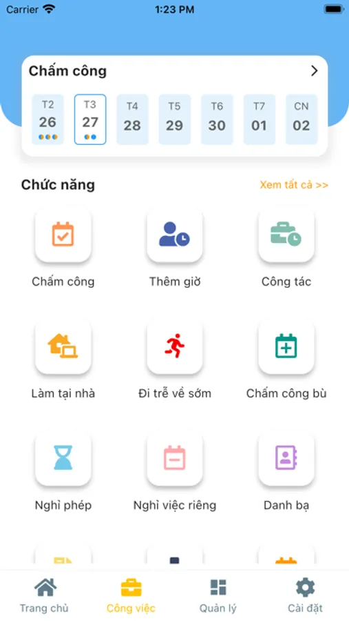 Ứng dụng PX1, hỗ trợ doanh nghiệp trong quản trị nhân sự, chấm công, gởi và phê duyệt các yêu cầu công tác, nghỉ phép... với các chức năng chính: